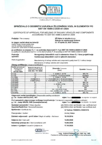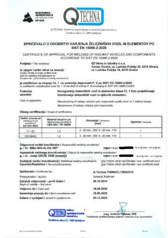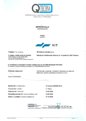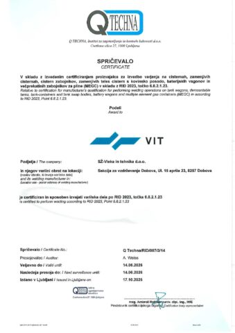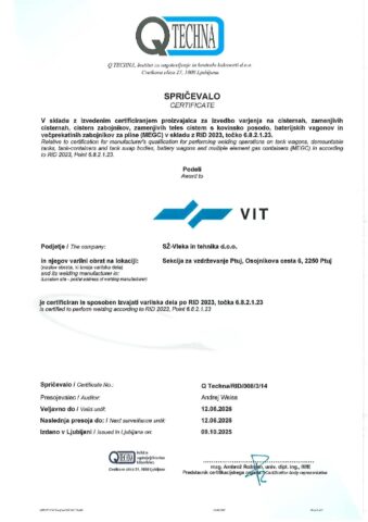 Inspection of pressure equipment, inspection of transportable tanks for carriage of dangerous goods according to European agreement concerning the international carriage of dangerous goods by railway - RID (7)